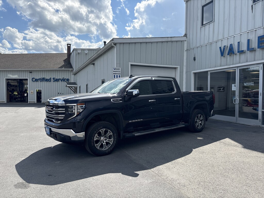 Come see this 2022 GMC Sierra 1500 SLT. Its Automatic transmission and Gas V8 5.3L/325 engine will keep you going. This GMC Sierra 1500 has the following options: X31 OFF-ROAD PACKAGE includes Off-Road suspension, (JHD) Hill Descent Control, (NZZ) skid plates, (K47) heavy-duty air filter and X31 hard badge Includes (NQH) 2-speed transfer case, (XCK) 265/65R18SL all-terrain, blackwall tires and (N10) dual exhaust., WIRELESS CHARGING, WINDOW, POWER, REAR SLIDING WITH REAR DEFOGGER, WHEELS, 18" X 8.5" (45.7 CM X 21.6 CM) 6-SPOKE MACHINED ALUMINUM with Dark Grey Metallic accents (STD), USB PORTS, 2, CHARGE/DATA PORTS LOCATED INSIDE CENTER CONSOLE, UNIVERSAL HOME REMOTE, TRANSMISSION, 10-SPEED AUTOMATIC WITH ELECTRONIC PRECISION SHIFT, ELECTRONICALLY CONTROLLED with overdrive, and tow/haul mode and steering column paddle shifters. Includes Cruise Grade Braking and Powertrain Grade Braking, TRANSFER CASE, TWO-SPEED, ELECTRONIC AUTOTRAC with push button control, TRAILER BRAKE CONTROLLER, INTEGRATED, and TITANIUM RUSH METALLIC. Test drive this vehicle at Valley Motors, 82 West Main St, Fort Kent, ME 04743.